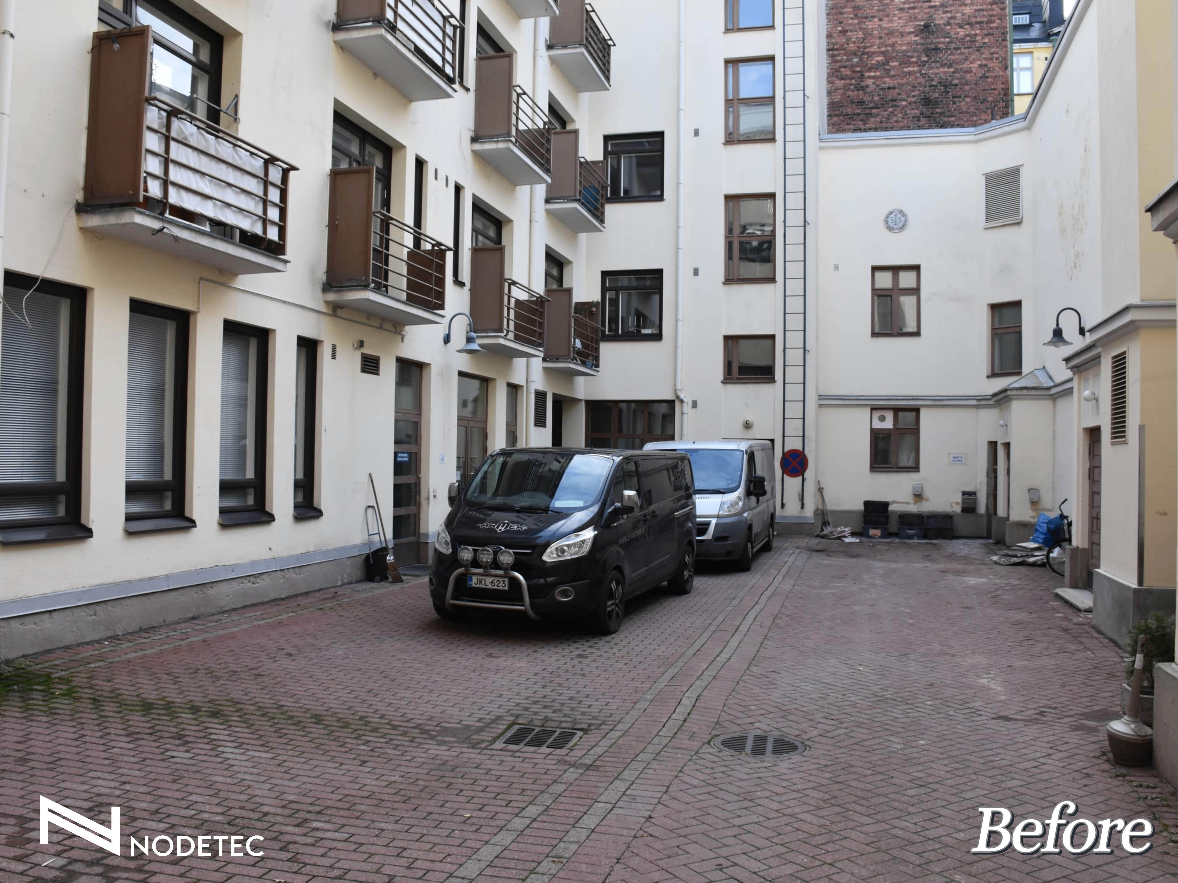 Rakennuksiin kulku tapahtui sisäpihan kautta, joka täytyi huomioida urakan toteutuksessa. Hyvillä suunnitelmilla, haasteisiin etukäteen varautumisella ja vaiheistuksella pihakannen saneeraus saatiin toteutettua aikataulussa ja kestävällä lopputuloksella.