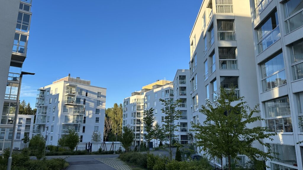 Alue koostuu kolmesta pistetalosta, pitkästä kolmen taloyhtiön